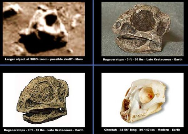 Среди камней марсианского грунта они увидели нечто необъяснимое: черепа и кости гепардов, птиц, археоптериксов и травоядных динозавров. Все это может говорить только о том, что на Красной планете раньше совершенно точно существовала жизнь вместе с флорой – зеленой растительностью.